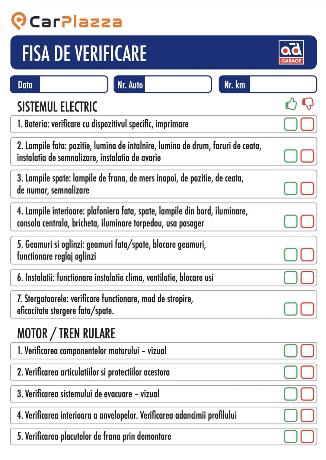 Fisa de verificare autovehicul - Model